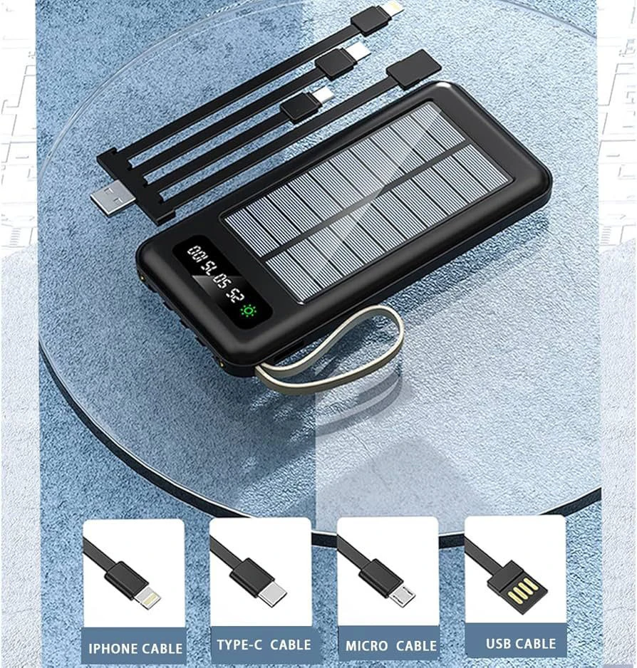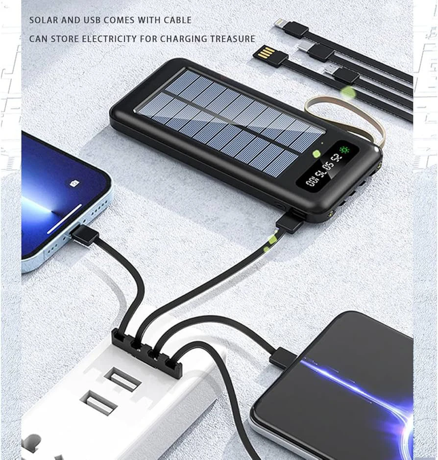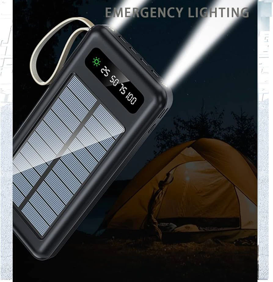 10 الف ميلي امبير ، 5 فولت ، 2 امبير  ، كشاف ، يحتوي على اربع منافذ شحن ، قاعدة للهاتف ،